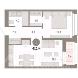 1-комн. квартира от застройщика с первичной отделкой в ЖК ''Нефть'' на 8 этаже. Общая площадь: 47.1 кв.м., жилая: 11.3 кв.м., площадь просторной кухни-гостиной: 19.7 кв.м. Все окна выходят на одну сторону. В квартире одна лоджия, один совмещенный санузел. Высота потолков 2.7 м. Дом монолитный, многоподъездный, переменной этажности, от 7 до 17 этажей. Квартира находится в 3-й секции высотой 17 этажей в корпусе 1. На этаже 8 квартир. В подъезде 1 пассажирский и 1 грузовой лифт. Окончание строительства - 2 квартал 2027 года. Оформление сделки по договору долевого участия. Квартира с кухней-гостиной и одной спальней в квартале ''Нефть''. Особенности планировки: гардеробная, лоджия, предчистовая отделка. квартиры в нашей базе: НФТ01-Ж3.8.5. Квартал ''Нефть'' построят в микрорайоне ''нефтяников''. Квартал состоит из четырёх жилых домов 7 — 9 этажей с акцентной башней в 17 этажей, подземными автостоянками и помещениями коммерческого назначения. Квартал находится в юго-западной части Сургута на пересечении Набережного проспекта и улицы Артёма. В районе уже сформированная инфраструктура. Рядом расположены три детских сада, университеты, парк и спортивная база. На первых этажах квартала спроектированы коммерческие помещения под повседневные сервисы для жителей: магазины, кафе, аптеки и другие полезные функции. Дом имеет переменную высотность 717 этажей. Секции высотой 7-9 этажей подразумевают небольшое количество соседей, спокойствие и приватность. Башня высотой в 17 этажей предлагает более динамичный характер проживания, здесь будет комфортно любителям активного городского ритма жизни. Дворы приватные и предназначены только для жителей. По стандартам Брусники зелень занимает 70% территории. В квартале ''Нефть'' озеленение выполнено по принципу долголетия ландшафта: оно плотное, разнообразное и многоярусное. Самый верхний ярус — взрослые деревья со сформированной кроной и высокие кустарники, ниже располагаются массивы кустарников среднего размера, нижний ярус — травы, многолетники и газон. Все растения подобраны с учётом сезонности и календаря цветения и сурового климата северного города. Осенью цвет ландшафта обеспечивает листва деревьев и кустарников, летом — цветение многолетников, зимой — вечнозелёные хвойные растения и кустарники с декоративными свойствами стеблей. #2588mm