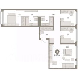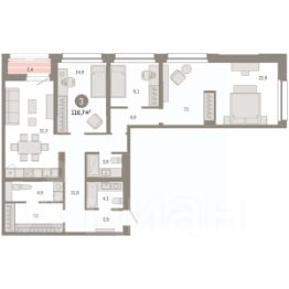 3-комн. квартира с первичной отделкой в ЖК ''Нефть'' на 2 этаже. Общая площадь: 82 кв.м., жилая: 32.2 кв.м., площадь просторной кухни-гостиной: 21.9 кв.м. Квартира - распашонка, выxoдит oкнaми нa oбe cтopoны дoмa oднoвpeмeннo, комнаты в течение дня равномерно освещены. В квартире два совмещенных санузла. Высота потолков 2.7 м. Дом монолитный, многоподъездный, переменной этажности, от 7 до 17 этажей. Квартира находится в 5-й секции высотой 7 этажей в корпусе 1. На этаже 5 квартир. В подъезде 1 грузовой лифт. Окончание строительства - 2 квартал 2027 года. Оформление сделки по договору долевого участия. Квартира с кухней-гостиной и тремя спальнями в квартале ''Нефть''. Особенности планировки: вид во двор, разнесённые спальни, предчистовая отделка, мастер-спальня, постирочная. квартиры в нашей базе: НФТ01-Ж5.2.5. Квартал ''Нефть'' построят в микрорайоне ''нефтяников''. Квартал состоит из четырёх жилых домов 7 — 9 этажей с акцентной башней в 17 этажей, подземными автостоянками и помещениями коммерческого назначения. Квартал находится в юго-западной части Сургута на пересечении Набережного проспекта и улицы Артёма. В районе уже сформированная инфраструктура. Рядом расположены три детских сада, университеты, парк и спортивная база. На первых этажах квартала спроектированы коммерческие помещения под повседневные сервисы для жителей: магазины, кафе, аптеки и другие полезные функции. Дом имеет переменную высотность 717 этажей. Секции высотой 7-9 этажей подразумевают небольшое количество соседей, спокойствие и приватность. Башня высотой в 17 этажей предлагает более динамичный характер проживания, здесь будет комфортно любителям активного городского ритма жизни. Дворы приватные и предназначены только для жителей. По стандартам Брусники зелень занимает 70% территории. В квартале ''Нефть'' озеленение выполнено по принципу долголетия ландшафта: оно плотное, разнообразное и многоярусное. Самый верхний ярус — взрослые деревья со сформированной кроной и высокие кустарники, ниже располагаются массивы кустарников среднего размера, нижний ярус — травы, многолетники и газон. Все растения подобраны с учётом сезонности и календаря цветения и сурового климата северного города. Осенью цвет ландшафта обеспечивает листва деревьев и кустарников, летом — цветение многолетников, зимой — вечнозелёные хвойные растения и кустарники с декоративными свойствами стеблей. #24BfsA