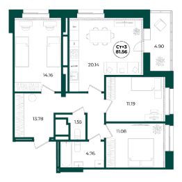 📚 Какая площадь трехкомнатных квартир?