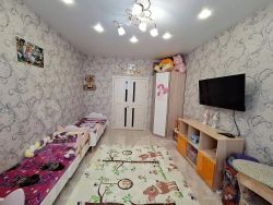 Продается Уютная, просторная, полностью Благоустроенная квартира, три раздельных комнаты с двумя балконами, один в кухне, один в спальне. В квартире остаётся вся мебель и техника по договорённости. В шаговой доступности магазины, автобусная остановка, садик, школа, поликлиника, колледж. Во дворе и в доме установлено видео наблюдение.