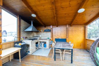 Продается уютный дом с террасой. В доме удобная планировка, кухня-гостиная, две спальни, баня с каминной комнатой. Электрокотёл с GSM модулем (управление с мобильного телефона), фильтр на воду, скважина (вода питьевая), в дом заведено трехфазное э/э. Дом подходит для круглогодичного проживания, прописка. Видеонаблюдение, ворота с электроприводом, территория участка засажена газоном.Находится в хорошем кооперативе с широкими улицами и дружными соседями, при въезде стоит шлагбаум и видеонаблюдение, дороги зимой регулярно чистят. Магазин Красное&Белое при въезде, рядом остановка общественного транспорта (112 и 115), такси приезжают без проблем, как и доставка из гипермаркетов.