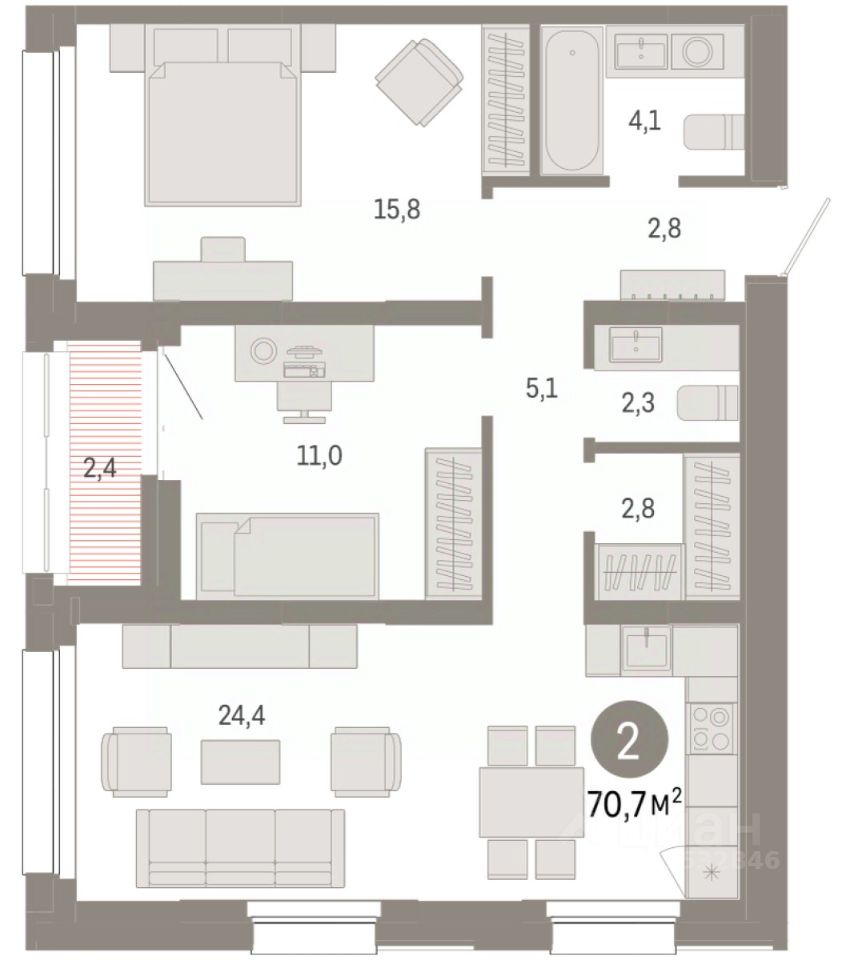 Общая площадь70,7 м2