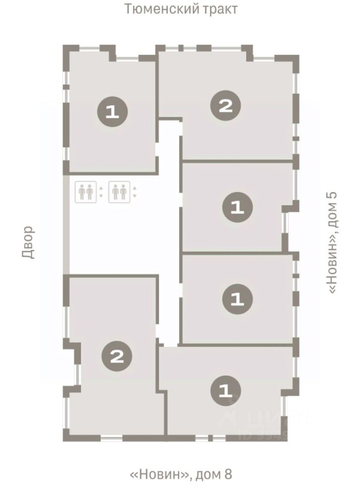 Квартира с кухней-гостиной и двумя спальнями в квартале ''Новин''. Особенности планировки: гардеробная, лоджия, разнесённые спальни, предчистовая отделка. квартиры в нашей базе: НСВ07-Ж4.14.2.