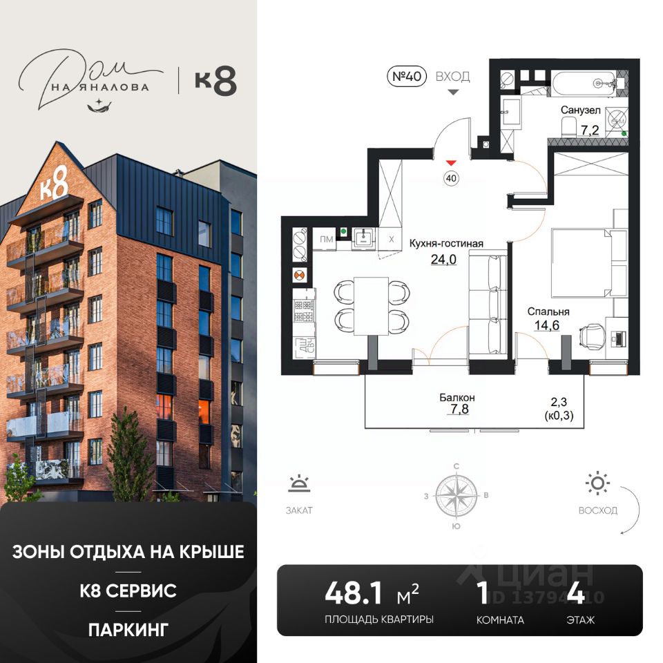 Общая площадь48,1 м2