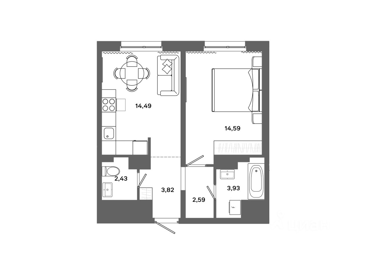 Жилая площадь14,6 м2