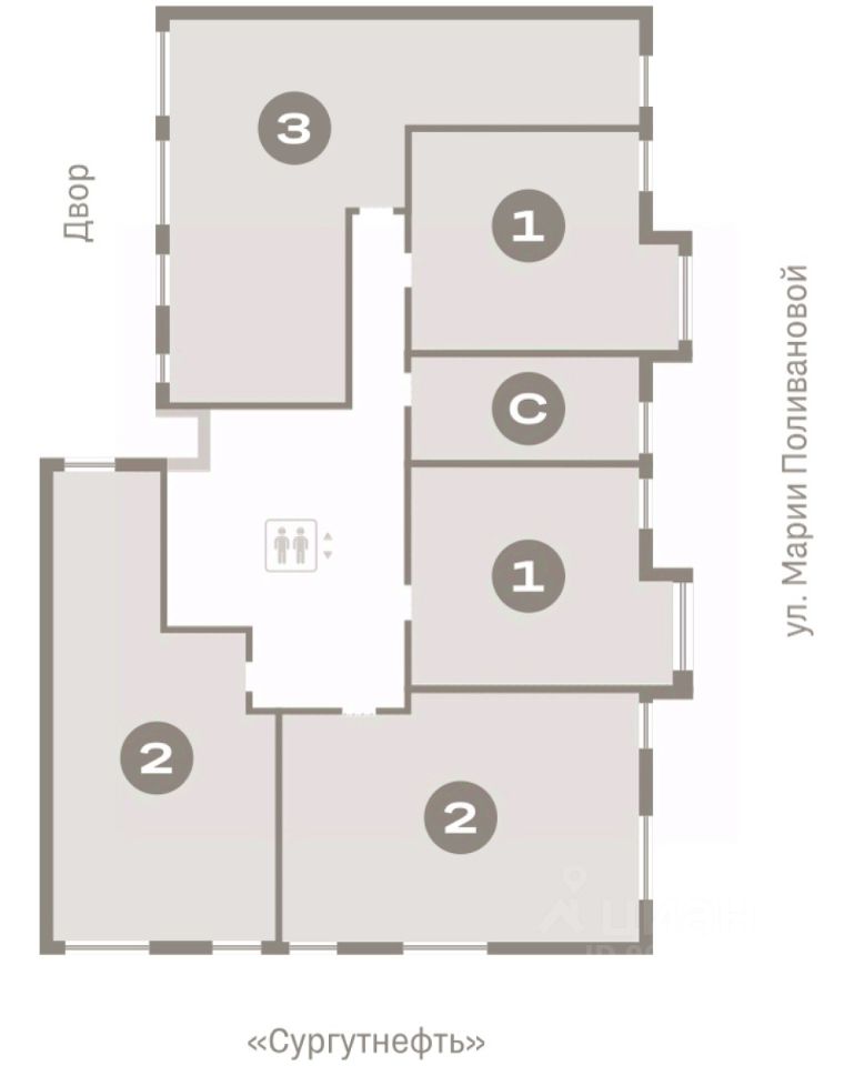Квартира с кухней-гостиной и тремя спальнями в квартале ''Нефть''. Особенности планировки: балкон, окна на две стороны, предчистовая отделка, разнесённые спальни. квартиры в нашей базе: НФТ02-Ж4.5.1.