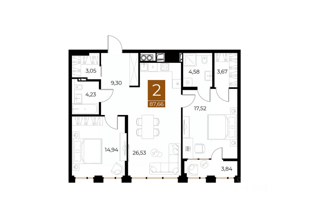 Общая площадь87,66 м2