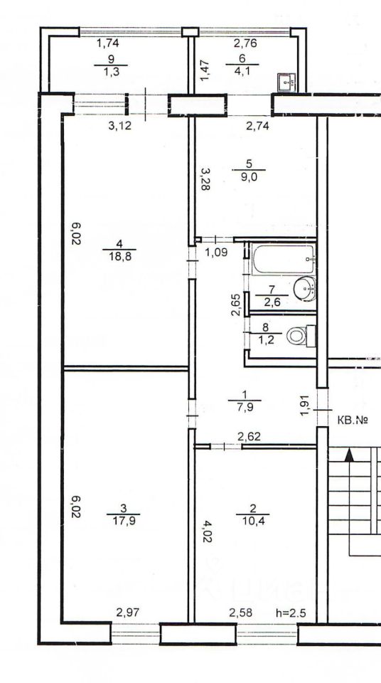 Комнаты изолированные (18,8 м² + 17,9 м² + 10,4 м²), просторная кухня (13,1 м²), санузел раздельный, застекленная лоджия, имеются счетчики на холодную и горячую воду и электроэнергию.