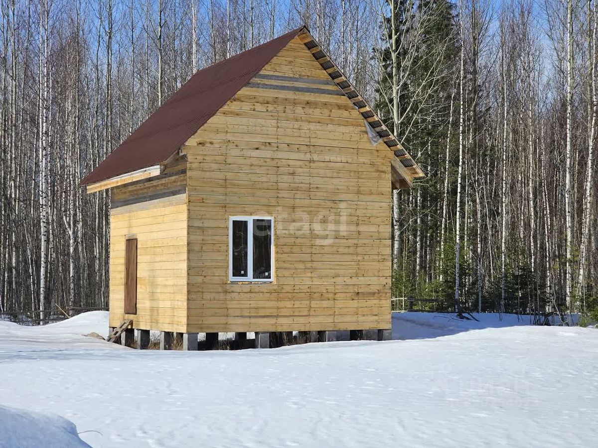 На участке расположен деревянный каркас недостроенного дома на железобетонных сваях, кровля покрыта ондулином.