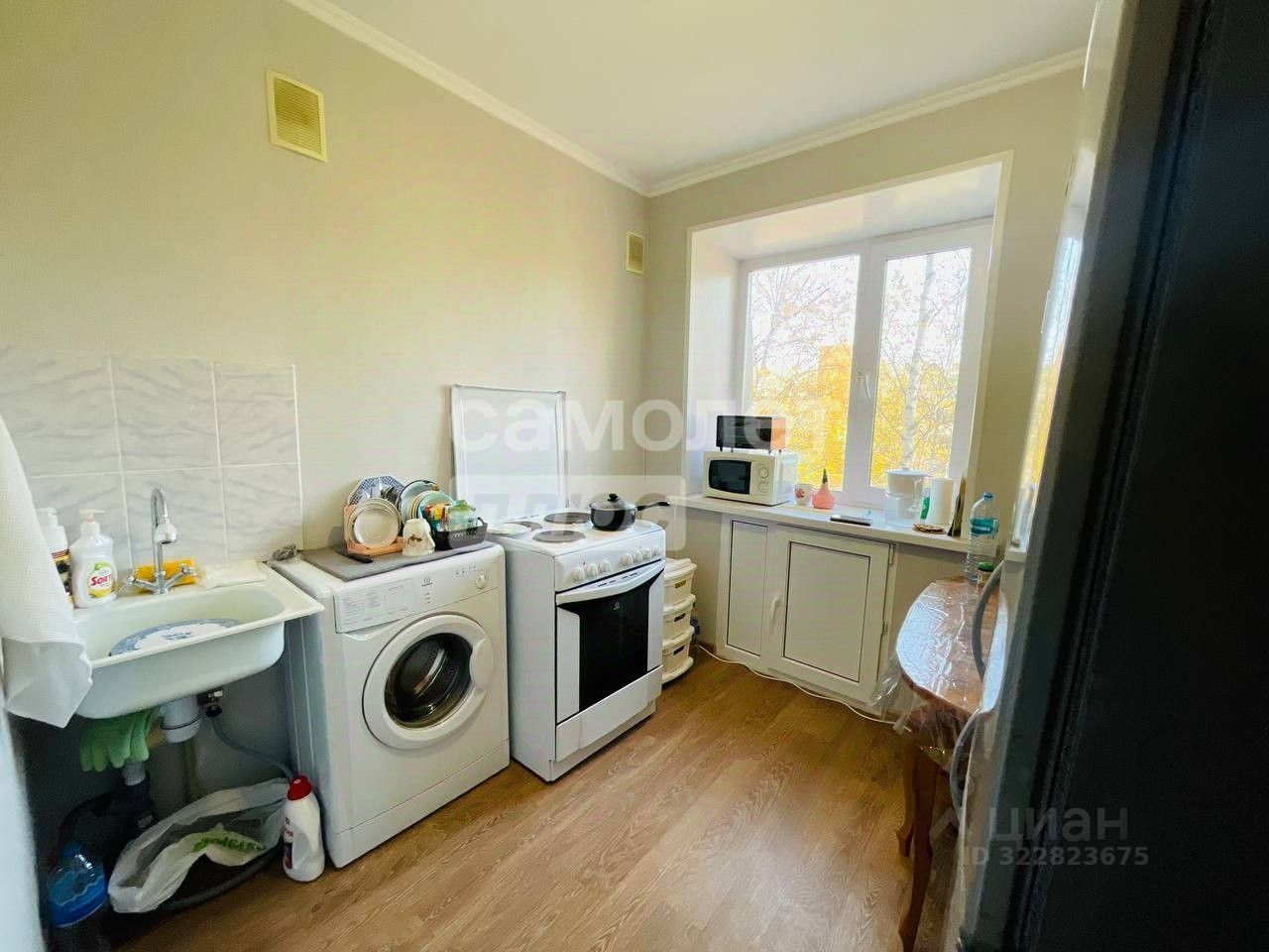 Выполнен косметический ремонт, полы выровнены покрытие линолеум, стены обклеены обоями При продаже остается : Холодильник, стиральная машина, электрическая плита, стол, стулья, кровать , гардеробный шкаф Совмещенный санузел в кафеле Застекленный балкон без ремонта