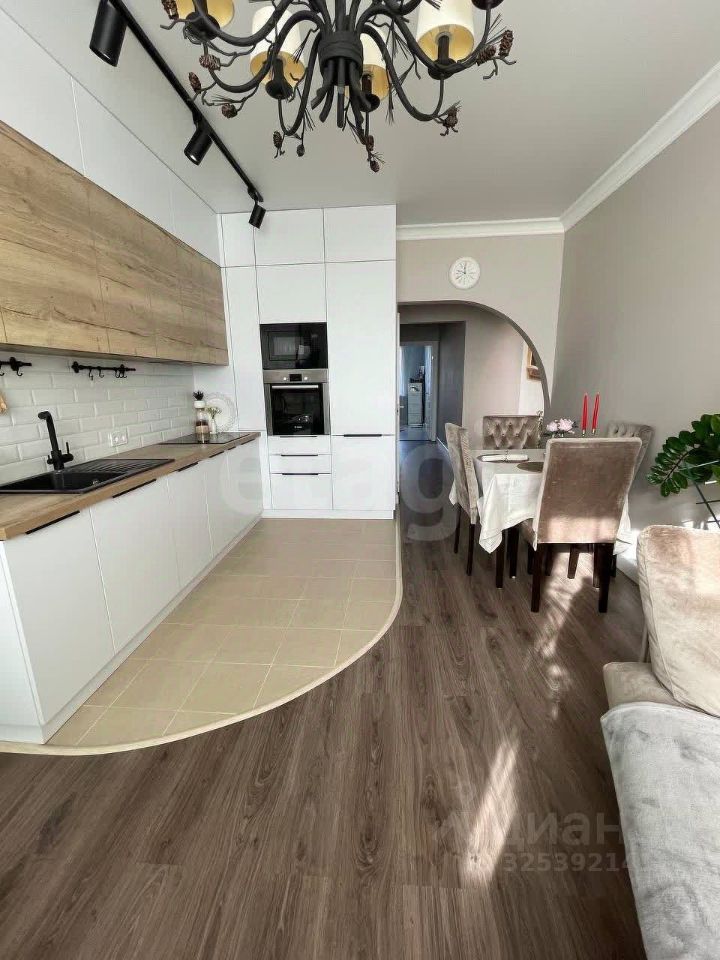 Кухня-гостиная: Просторная зона для жизни и приёма гостей. Стильная кухня с обилием функциональных шкафов с доводчиками Blum. Вся встроенная техника остаётся (духовой шкаф, варочная панель, вытяжка, холодильник, посудомоечная машина). Полы: немецкий ламинат 34 класса, в зоне кухни — керамогранит с подогревом. Главная спальня: Нежный нейтральный цвет стен, большая двуспальная кровать, вместительный шкаф-купе на заказ (эмаль, доводчики), телевизор. Детская/вторая спальня: Светлая комната с новым ортопедическим диваном и шкафом от IKEA. Цвет стен можно легко сменить под свой вкус. Дополнительные помещения: Большая утеплённая лоджия (5.4 кв.м): Полностью переделана: новая рама с стеклопакетом, свой подогрев пола. Идеальное место для кабинета, зоны отдыха или хранения (есть шкаф и комод). Гардеробная: Отдельная зона для верхней одежды. Прихожая: Вместительная обувница. Санузел: Раздельный. Установлена большая угловая акриловая ванна, стиральная машина и комплект мебели.