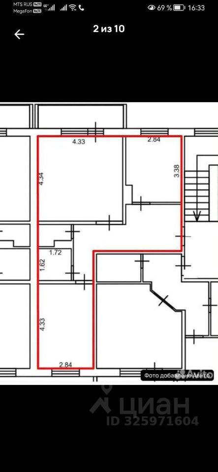 По факту сделана в трешку, две отдельные спальни и большая кухня/гостиная - 16 кВ., с балконом.