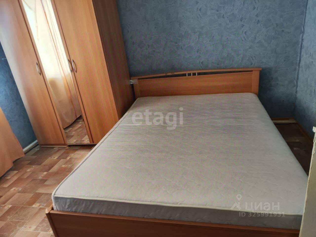 В спальне двуспальная кровать и шкаф.