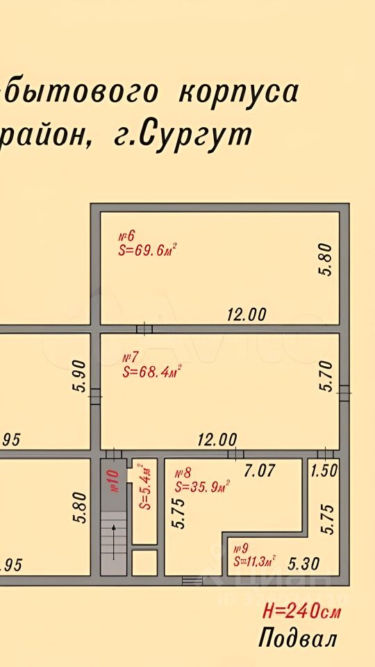 Отапливаемое помещение (8 на поэтажном плане), расположенное в цоколе двухэтажного административного здания. Помещение отделано кафелем, имеется мойка, вода и канализация, освещение. На первом этаже работает столовая, расположен санузел+душевая комната, офисные помещения. В помещение возможно подключение к сети интернет и телефония. В цокольном этаже расположены: магазин автозапчастей, склады, пивоварня и другое имущество.