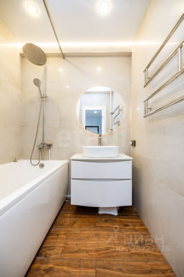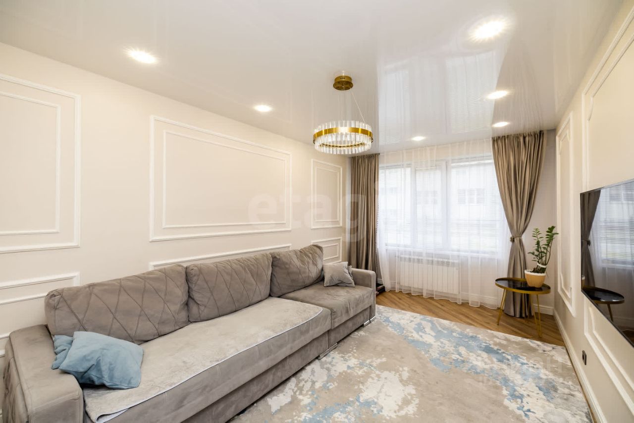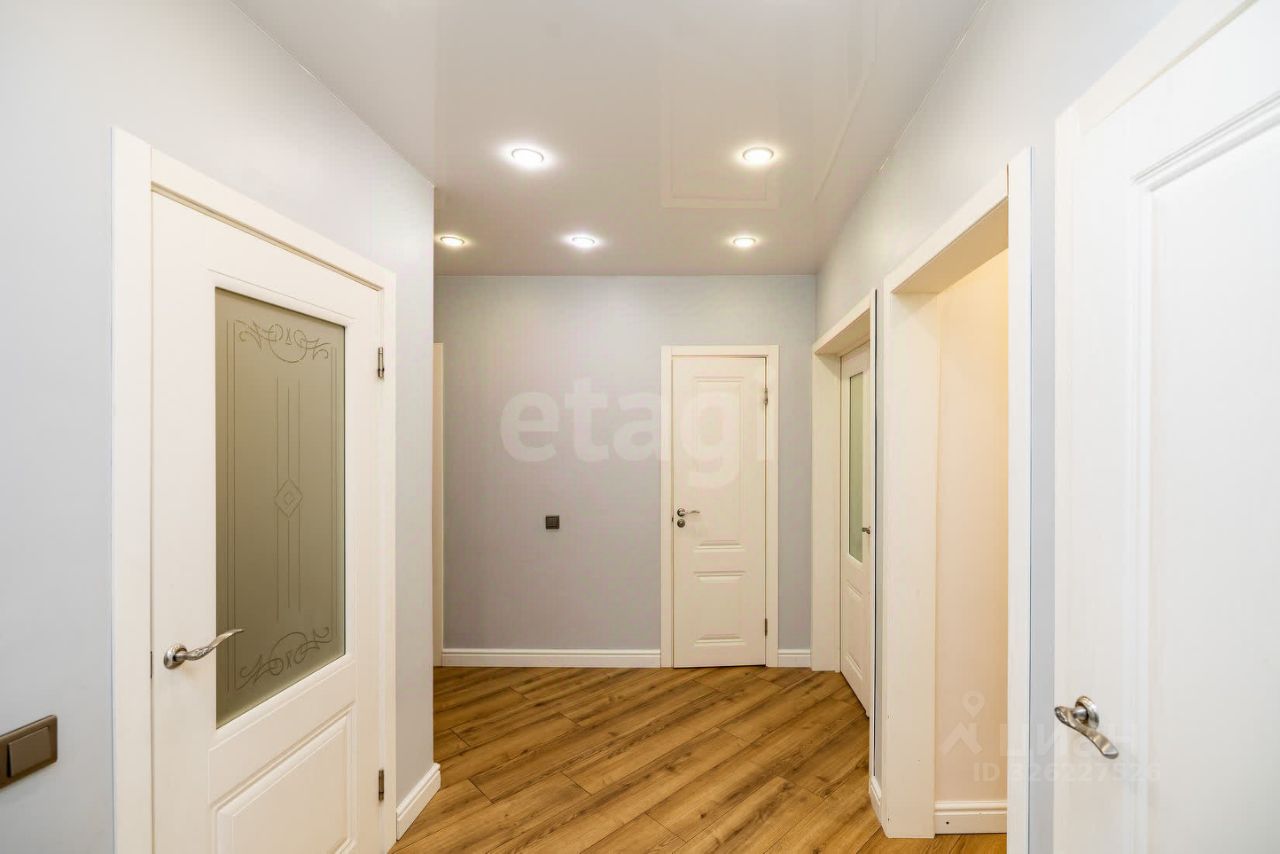 Продается просторная двухкомнатная квартира площадью 73,7 кв. м с балконом, расположенная в благоустроенном районе с развитой инфраструктурой. Объект отличается современным ремонтом 2022 года, выполненным с использованием качественных материалов. Планировка ''распашонка'' обеспечивает хорошую инсоляцию — окна выходят на обе стороны дома, создавая комфортный уровень естественного освещения. В квартире выделяется просторная гардеробная комната площадью 8 кв. м и отдельная прачечная зона 1,5 кв. м. Санузел раздельный, отделан керамогранитом, ванная комната также выполнена в современном стиле. Кухня оборудована мебелью от фабрики ''Lorena'' со встроенной техникой премиум-класса, что подчеркивает продуманность интерьера.