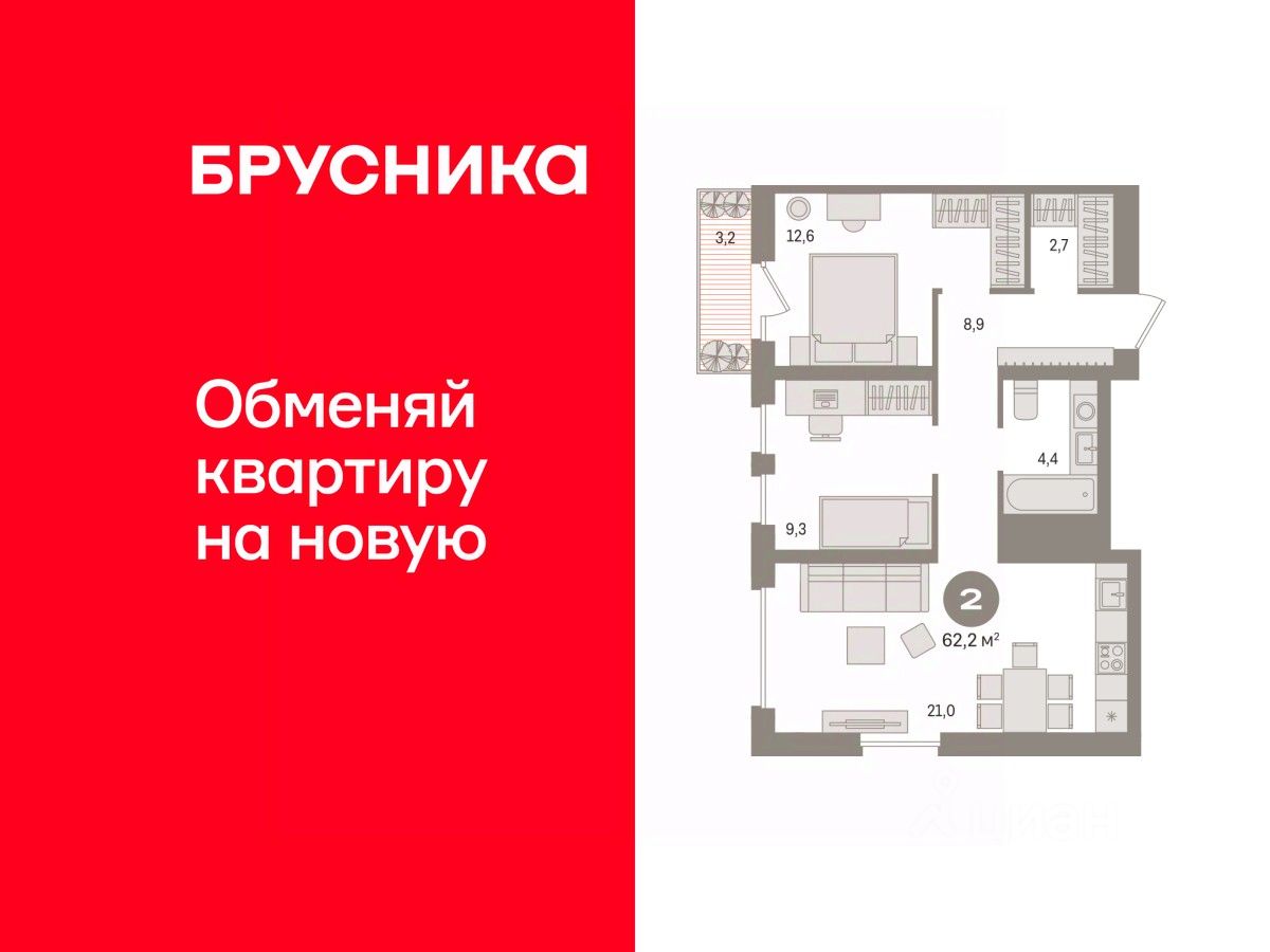 Общая площадь62,17 м2