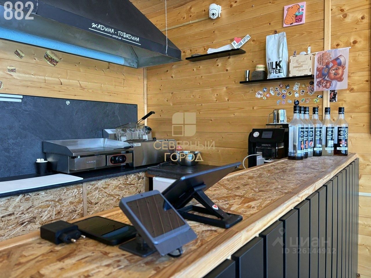 Сейчас работает как популярный бургер бар ''Жадина говядина''. Но может быть переоборудован под любой бизнес (кофейню, шаурмичную, булочную, блинную, сувениры, лотереи, табачку, и прочее).