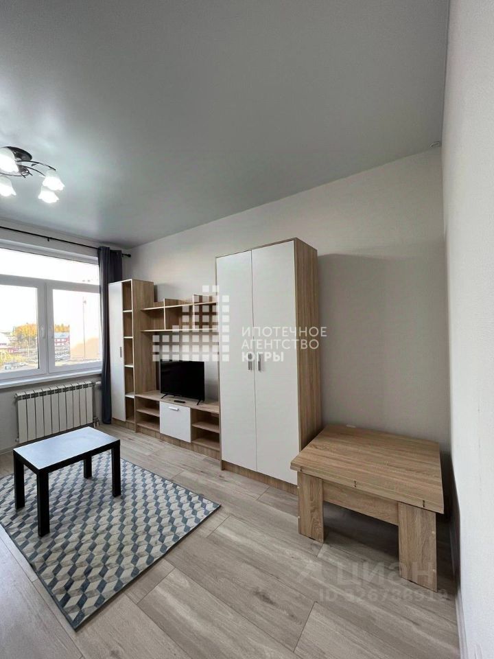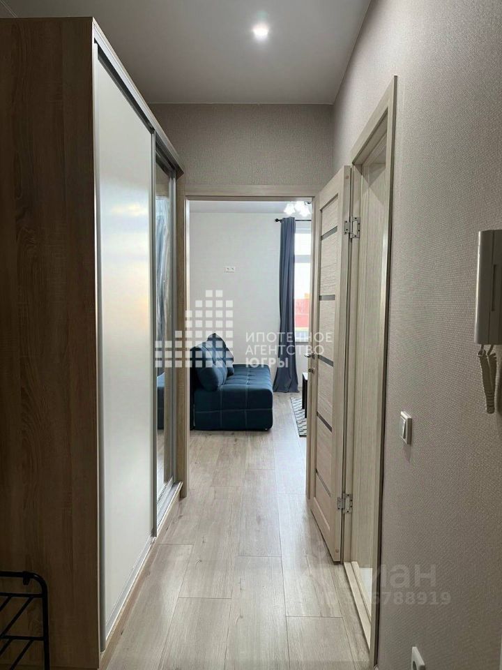 Планировка формата — ''Студия''. Данная планировка характеризуется просторной кухней-гостиной с двумя окнами, благодаря чему возможно зонировать пространство на обеденную и спальную зоны. Также возможно поставить стенку и сделать полноценную однокомнатную. При продаже новому собственнику останется вся мебель и техника. Кухня оборудована всем необходимым: холодильник, стильная мебель и современная бытовая техника. Просторная зона для обедов создает атмосферу уюта. В комнате установлен удобный диван, а также вместительные шкафы для хранения вещей. Санузел совмещенный, оформлен плиткой что добавляет тепла интерьеру. В ванной комнате предусмотрены все необходимые аксессуары для комфортного использования.