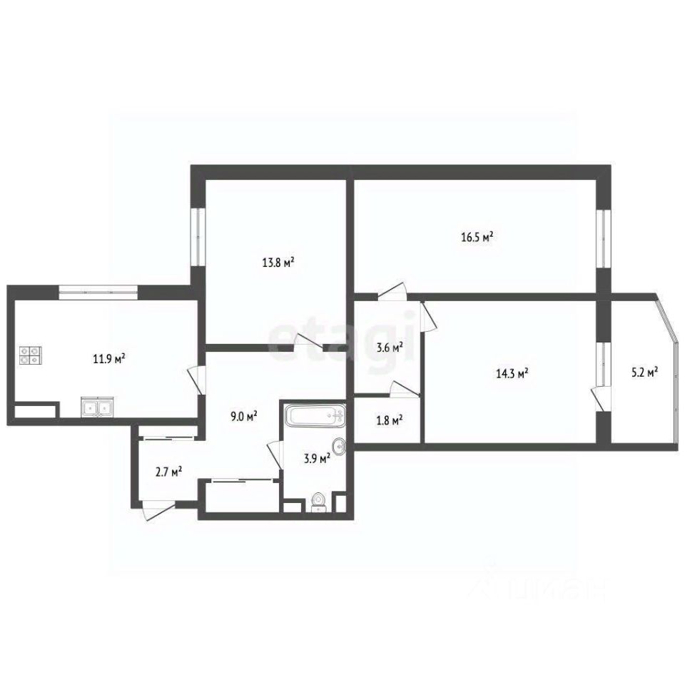 Просторная и светлая — воплотите любые дизайнерские решения благодаря удобной перепланировке.