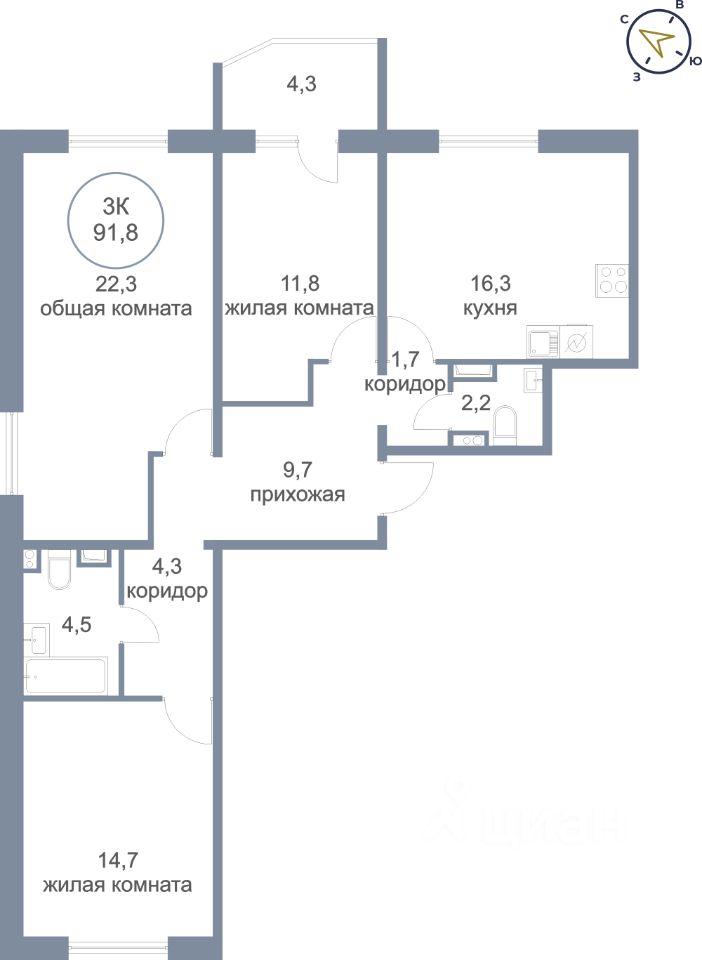 Продаётся 3-комнатная квартира в сданном доме (Молодёжная, 6А), срок сдачи: IV-кв. 2025, общей площадью 91.8 кв.м., на 2 этаже. Новый жилой комплекс ''Молодежный'' от застройщика ''Сибпромстрой'' расположен по адресу: Ханты-Мансийский автономный округ, посёлок Солнечный, Молодёжная улица.