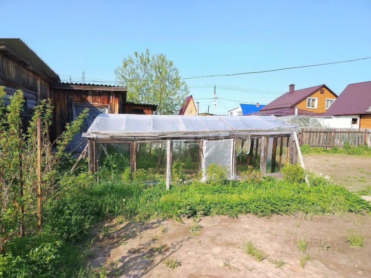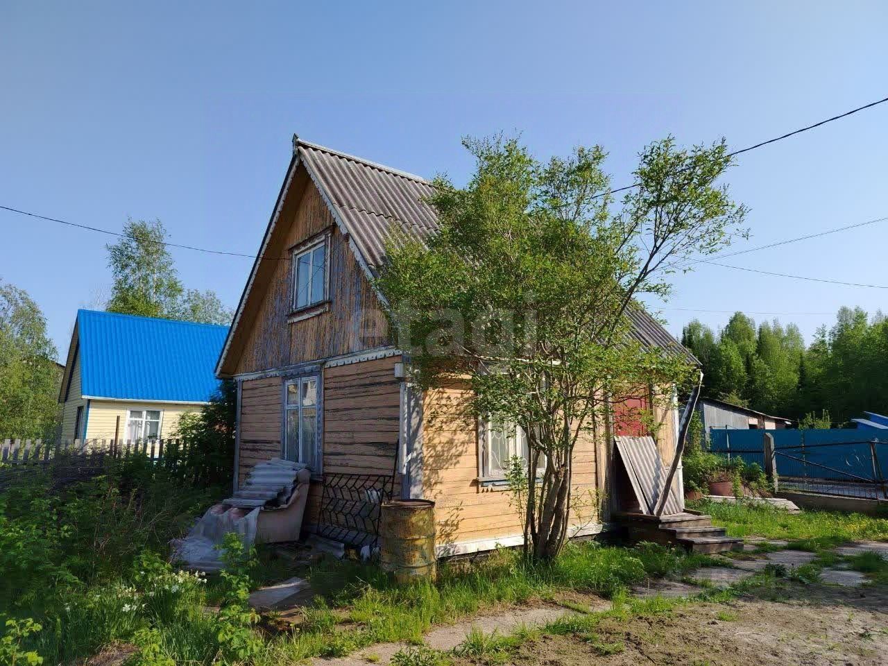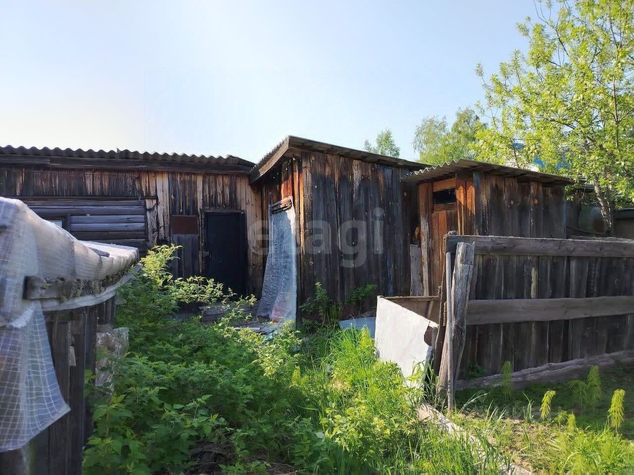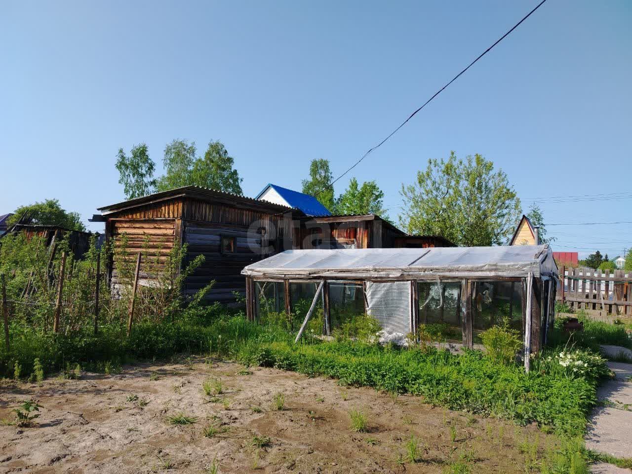 На участке построен небольшой садовый домик из профилированного бруса в два этажа. Кроме того, имеются хозпостройки и небольшая банька.