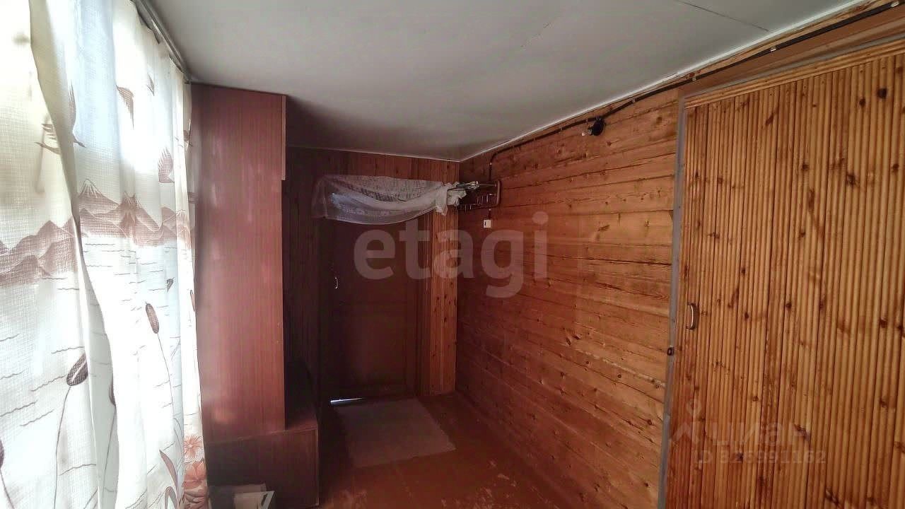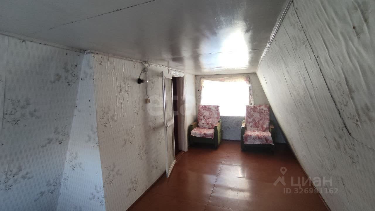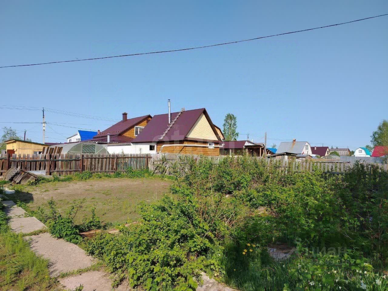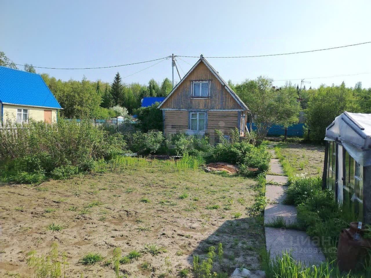 На участке построен небольшой садовый домик из профилированного бруса в два этажа. Кроме того, имеются хозпостройки и небольшая банька.