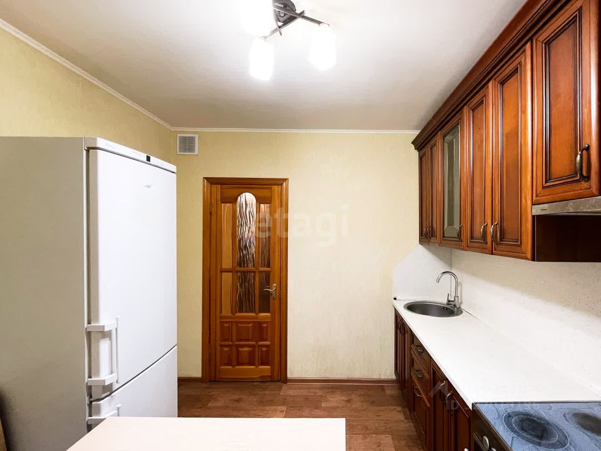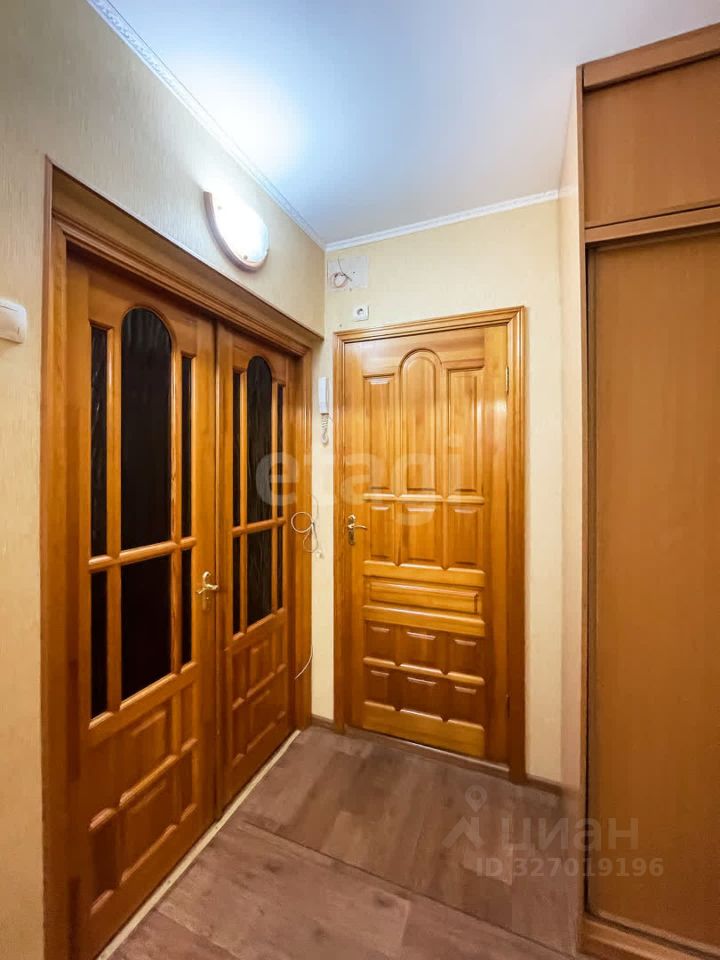 В квартире есть пассажирский лифт. Выполнен качественный косметический ремонт: на полу постелен линолеум, стены оклеены обоями теплых тонов, ванная комната и туалет раздельные и выложены кафелем. Окна выходят во двор.