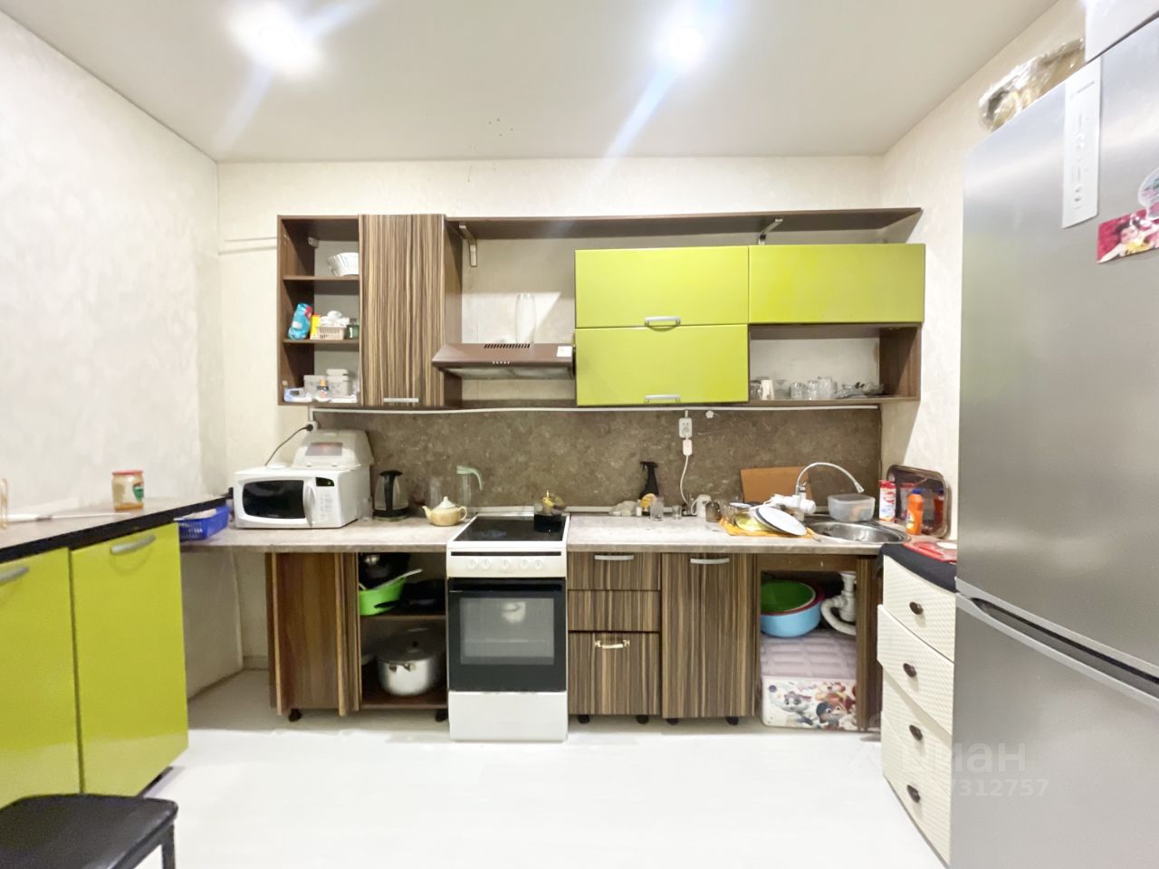 В квартире требуется частичный ремонт, окна пластиковые, межкомнатные двери, на полу ламинат.