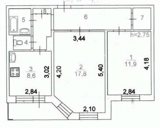продам 2-к, Комсомольский проспект, 276 799 999 ₽