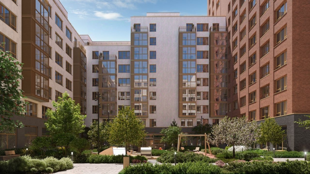 Дом имеет переменную высотность 717 этажей. Секции высотой 7-9 этажей подразумевают небольшое количество соседей, спокойствие и приватность. Башня высотой в 17 этажей предлагает более динамичный характер проживания, здесь будет комфортно любителям активного городского ритма жизни.