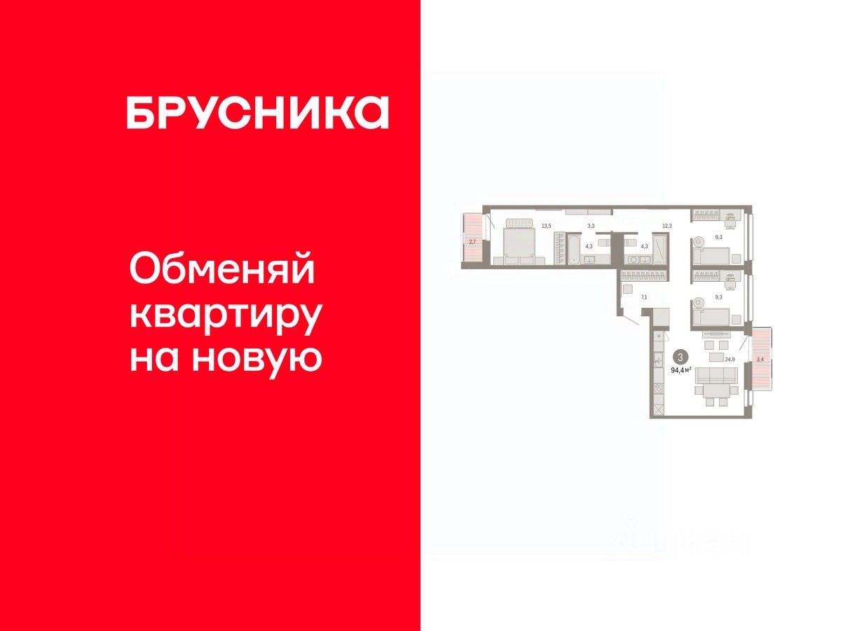 Общая площадь94,4 м2